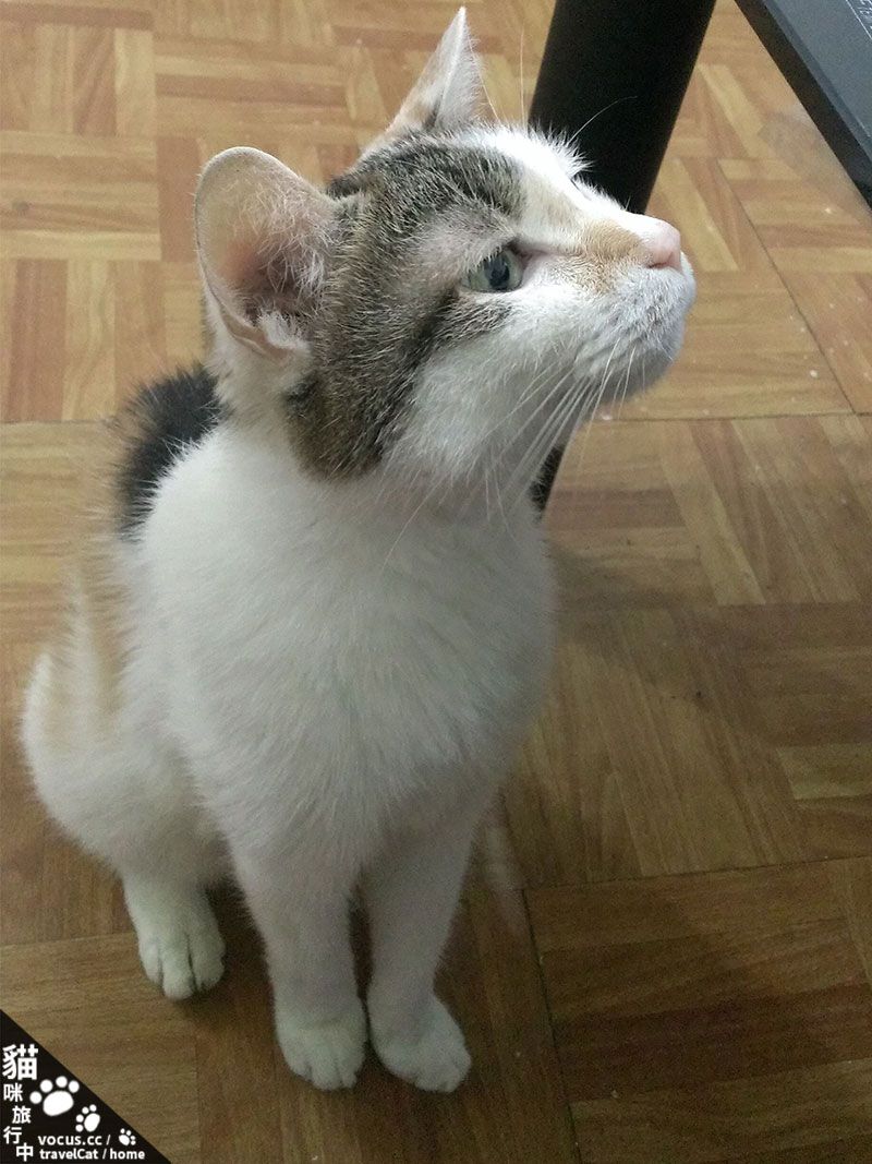 我以前的其中一個貓咪室友就是三花貓〔MOMO〕,是吃貨一枚,時常會這樣看著桌上的食物〔明明都有餵妳吼〕…