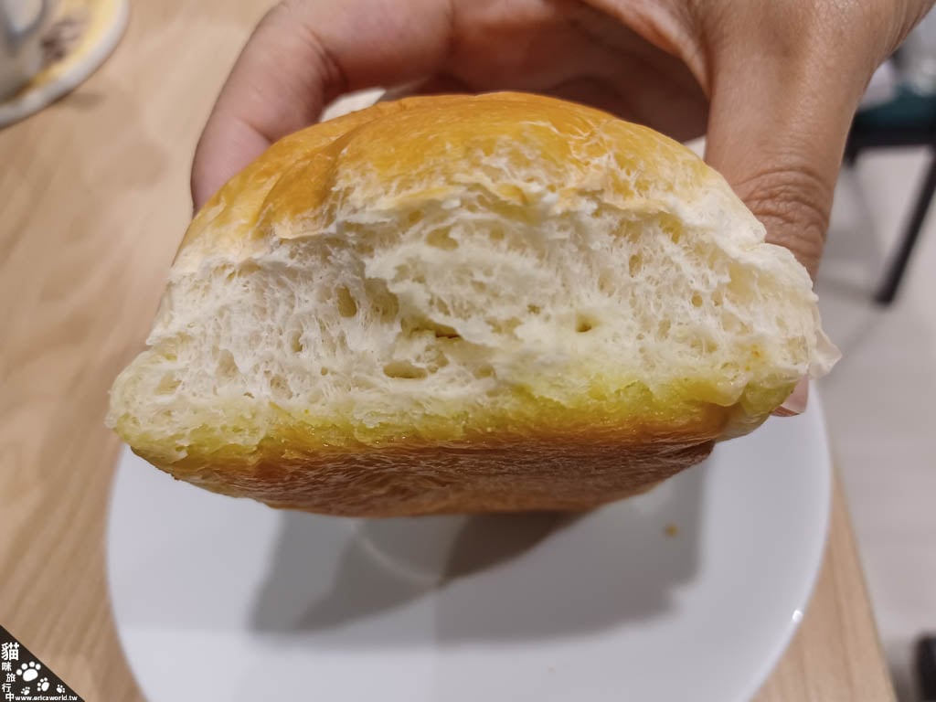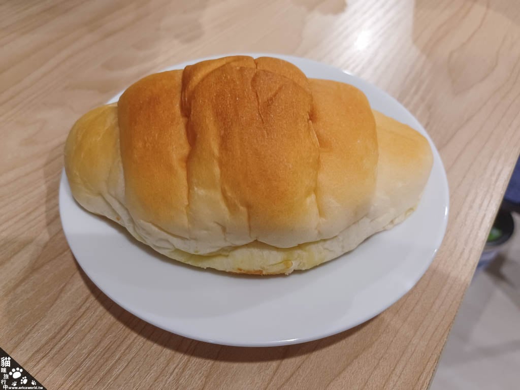 其實這顆不太像一般的可頌,外皮也沒有酥感,應該可以說是可頌形麵包?