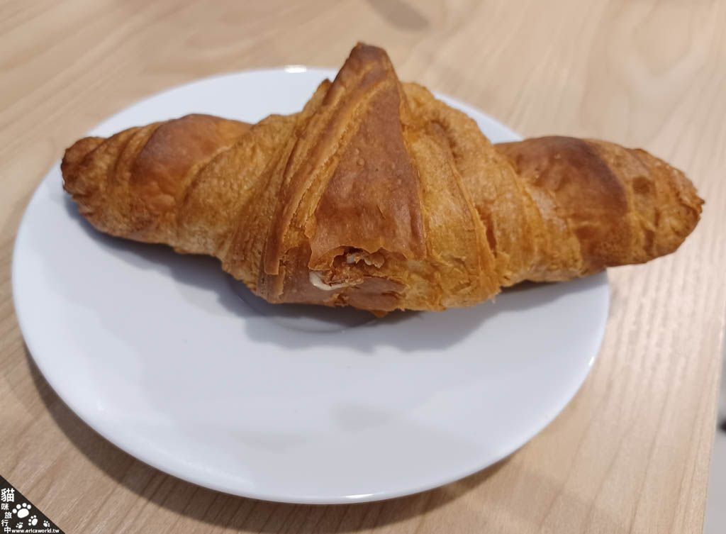 其實這顆不太像一般的可頌,外皮也沒有酥感,應該可以說是可頌形麵包?